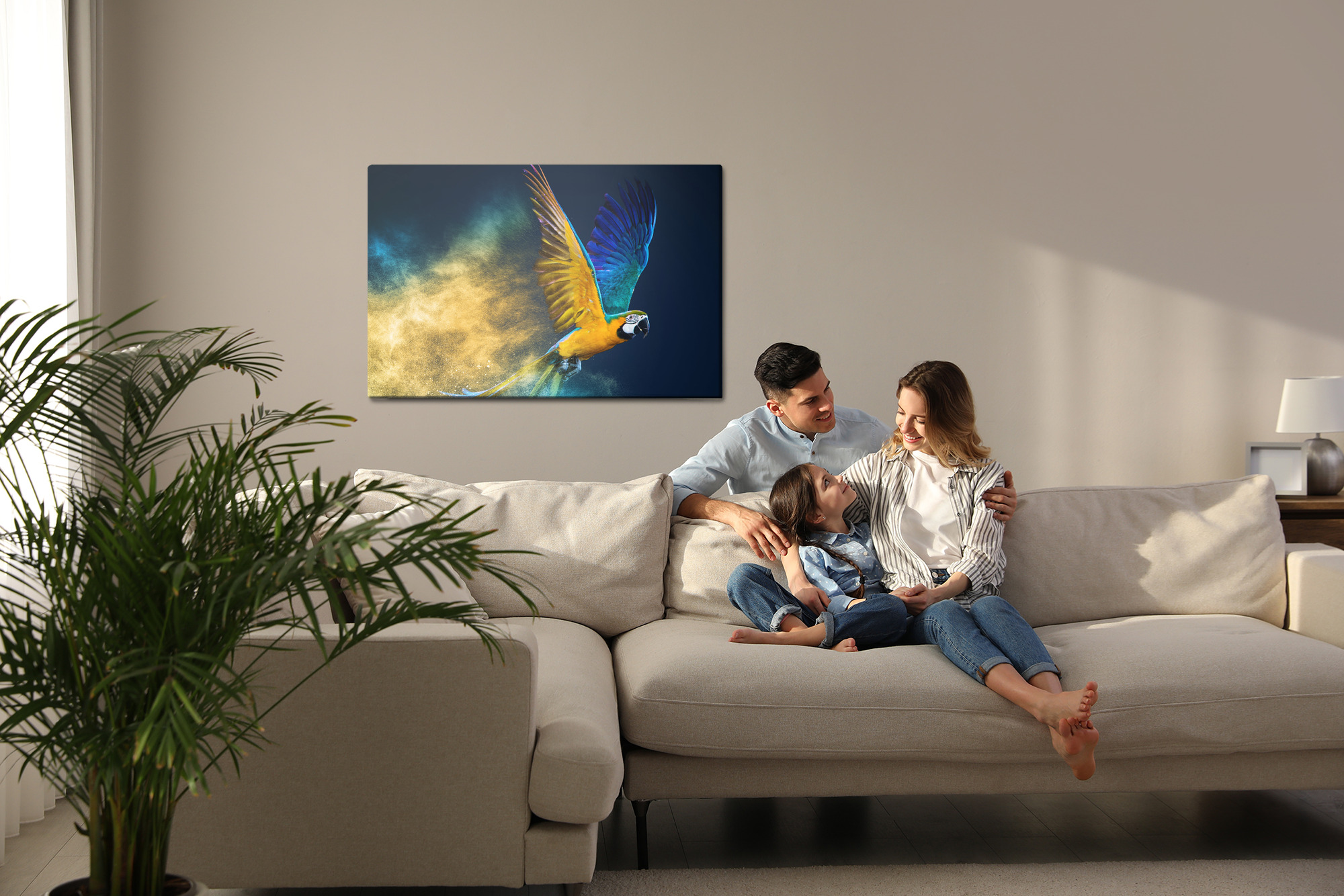 Syntetické plátno (běžně nazývané Canvas) je materiál s vysokou gramáží 260 g/m², povrch materiálu je bílý a má textilní strukturu. Přírodní plátno, tedy plátno přírodního původu, je také materiál o gramáži 260 g/m², speciálně připravený pro tisk. Spojení struktury materiálu s fotografickou kvalitou latexového tisku vytváří jedinečné dekorace do každého interiéru. Po tisku a vystřižení je plátno napnuté na rám z pravého borového dřeva. Takto připravený produkt je připraven k zavěšení na zeď. K obrazu také přikládáme dva hřebíkové závěsy, které můžete volitelně použít.