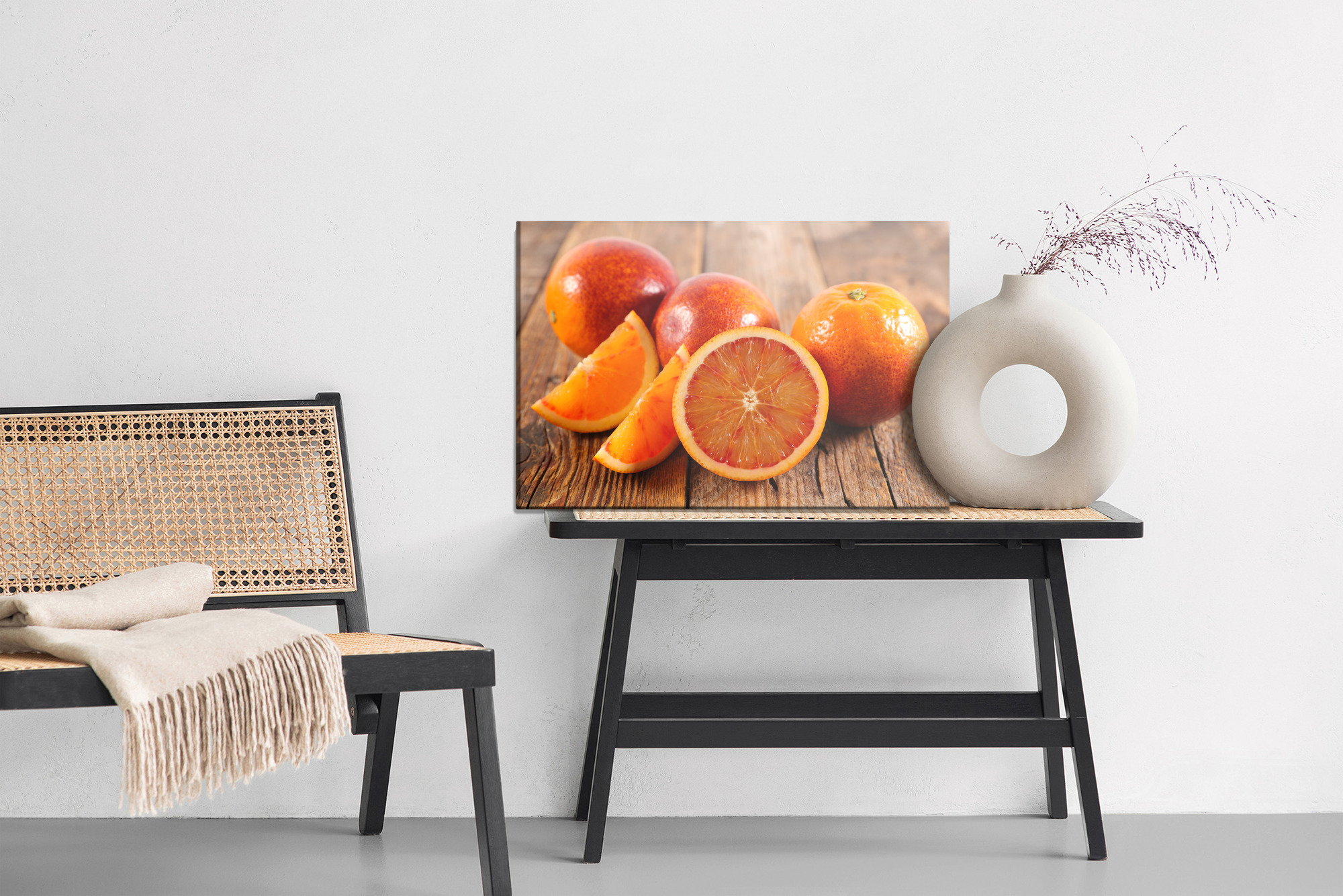 Perfekt geeignet für Küche, Esszimmer, Café, Restaurant oder ein gemütliches Wohnzimmer. Die warmen, fruchtigen Farben regen die Sinne an und schaffen eine einladende Atmosphäre – ideal für gemeinsame Mahlzeiten und gesellige Momente. Die kräftigen roten Orangen in Kombination mit sanften Holztönen symbolisieren Gesundheit, Frische und Vitalität – eine wunderbare Wahl für Naturliebhaber und Fans des Slow-Life-Stils.