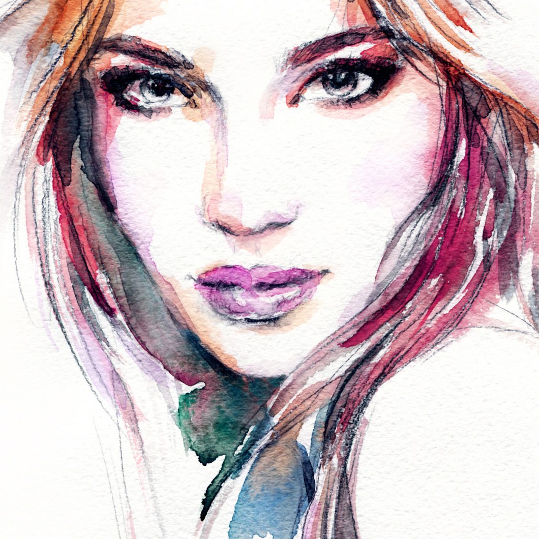 Glamour canvas art: woman portrait in watercolor style