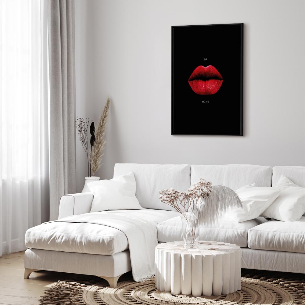 A striking canvas print featuring red lips set against a deep black background is a decoration that immediately draws attention and gives the interior a bold, modern character. The contrasting composition combines sensuality, elegance, and a fashionable glamour mood, making it a perfect choice for the living room, bedroom, office, hotel, or stylish restaurant. Intense red paired with black creates a sense of luxury and a strong visual accent on the wall. This wall art is ideal for modern interiors, highlighting the individual style of the space and adding a unique energy.