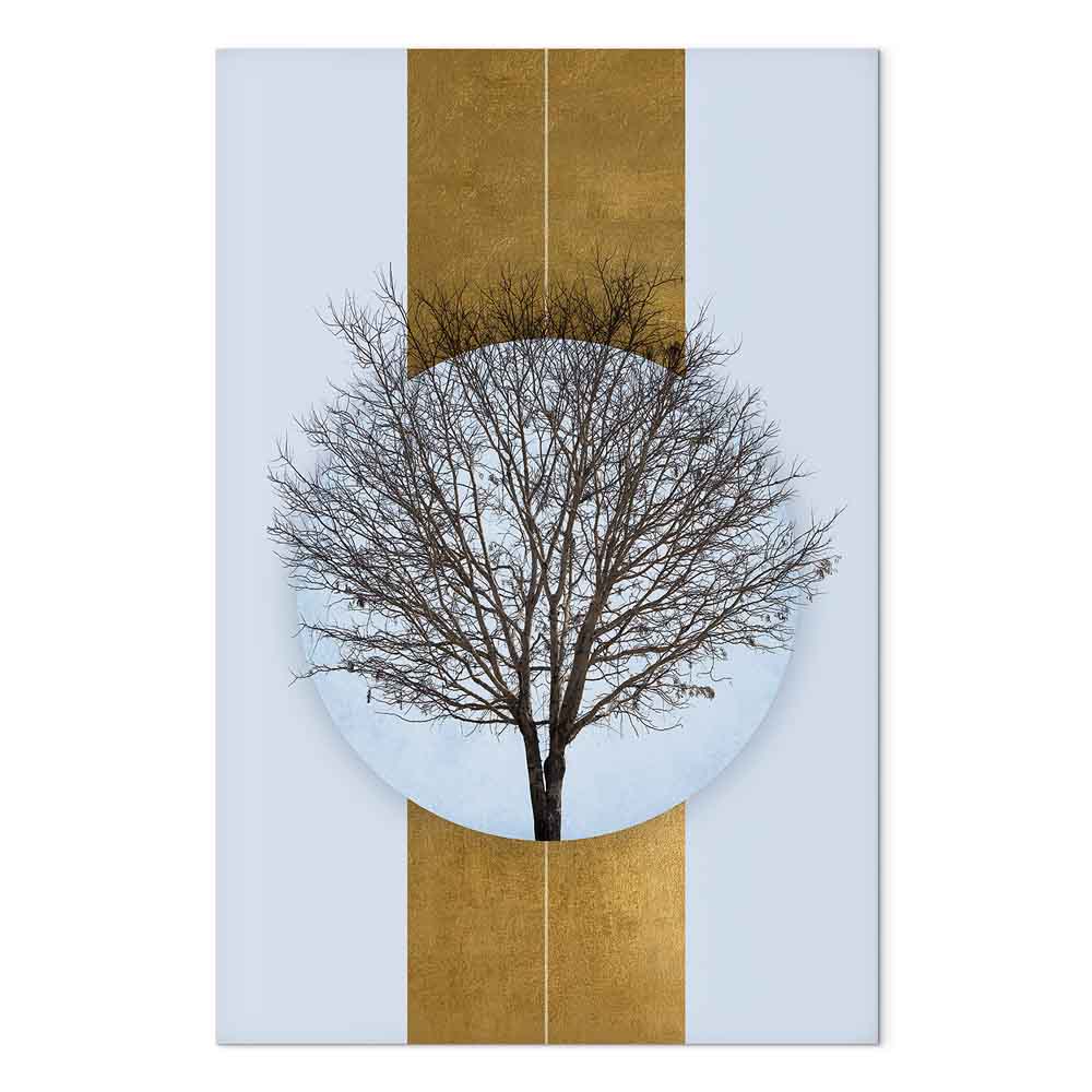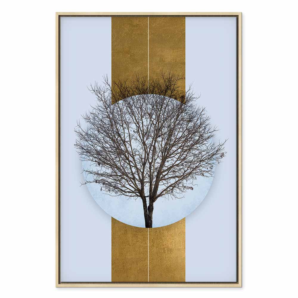 This stylish canvas print with a tree motif set within a modern geometric form draws attention with its elegant blend of nature and minimalist design. Subtle shades of grey, white, beige and a golden accent create a harmonious composition that brings calm, lightness and refined character into the interior. This wall art is a perfect choice for a living room, bedroom, office, hotel or hallway, beautifully enhancing modern and Scandinavian interiors. It is an excellent option for those who are looking for a nature inspired decoration presented in an elegant, balanced and highly striking way.